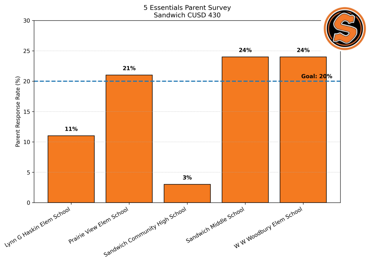 Research has shown that schools that were strong on at least three of these “5Essential” indicators were 10 times more likely to improve student learning gains in math and reading than those that were weak on the indicators. We need 20% of parent participation in each building to receive this report.